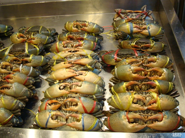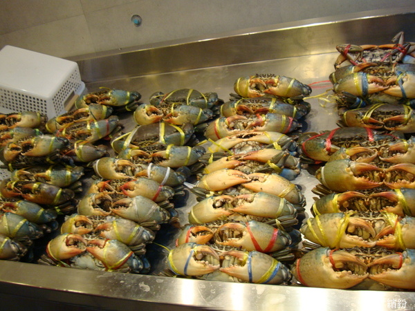 ▲大螃蟹排列如閱兵典禮,新鮮不怕您驗貨。