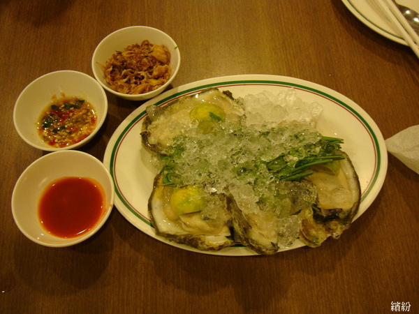 ▲先上的是一盤生蠔,還有三碟子配料,就說泰國每道菜都有專屬沾醬。
