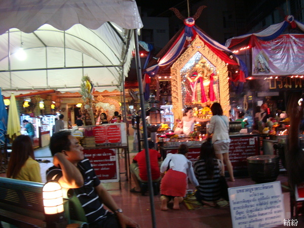 我很識相的把相機收好,跟著Pook點香禮佛,還看到很多泰國人買紅色的飲料、食品、香花來拜佛。