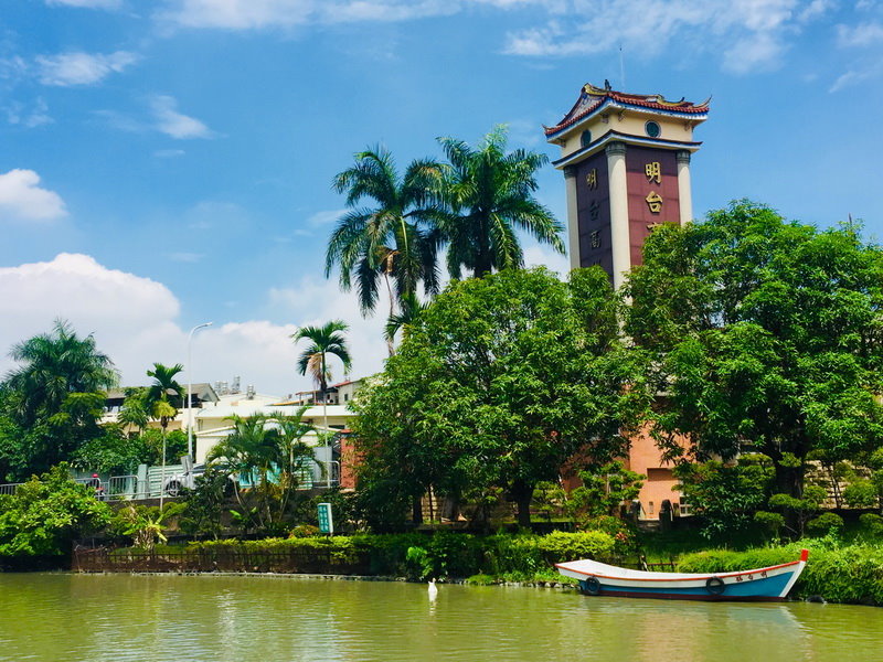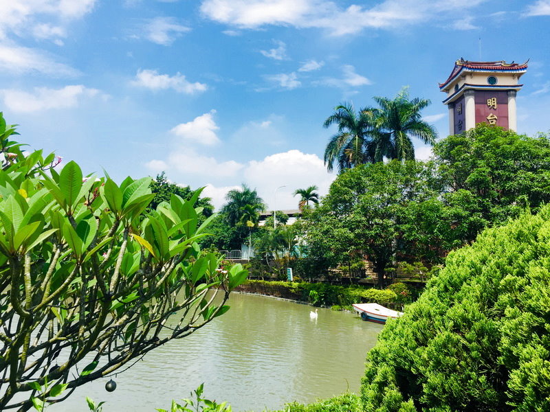 從飛殤醉月亭內欣賞明台高中,景色怡人…..