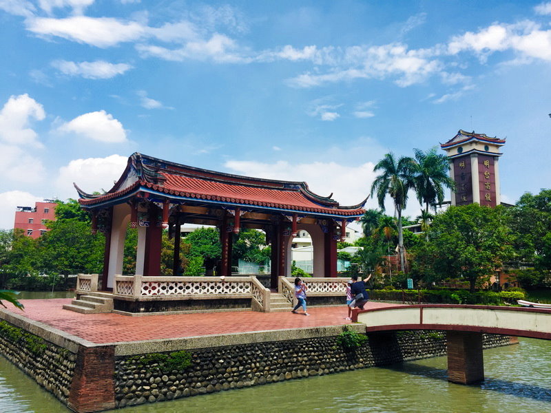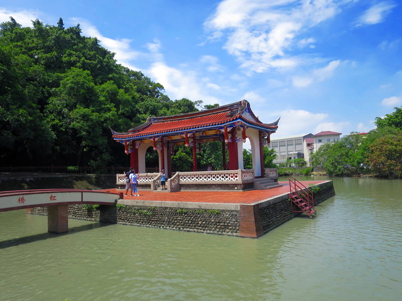 霧峰林家花園-萊園(明台高中)內,園區有國定古蹟五桂樓、飛殤醉月亭、木棉橋等萊園十景。
