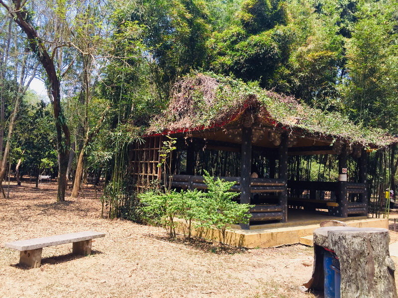 深不見底肖楠步道,林木蒼鬱,綠意盎然…. 走回戴綠帽的涼亭,後方有一排雅致的竹林。