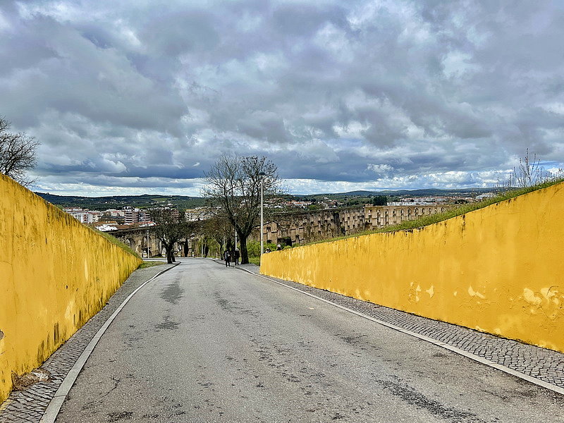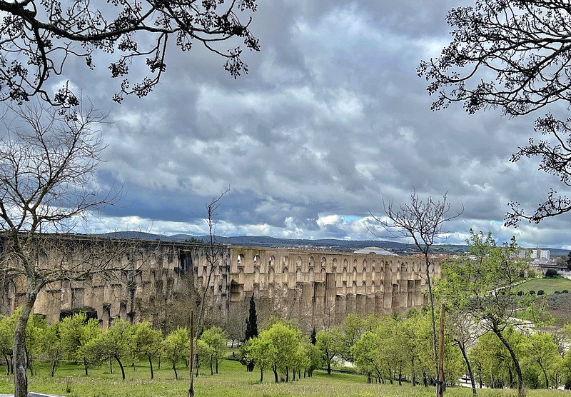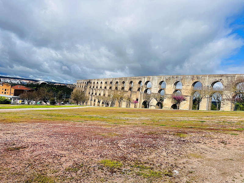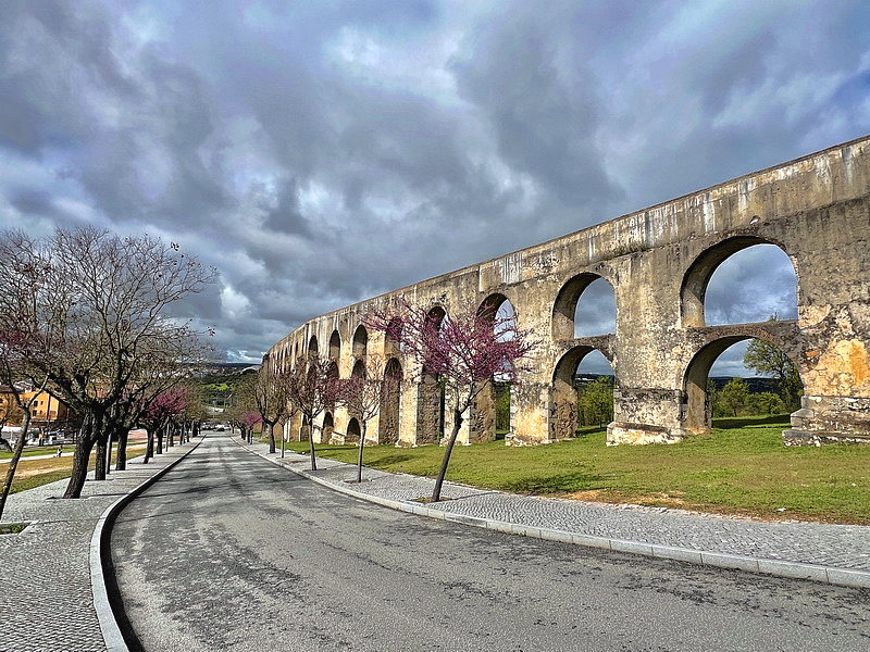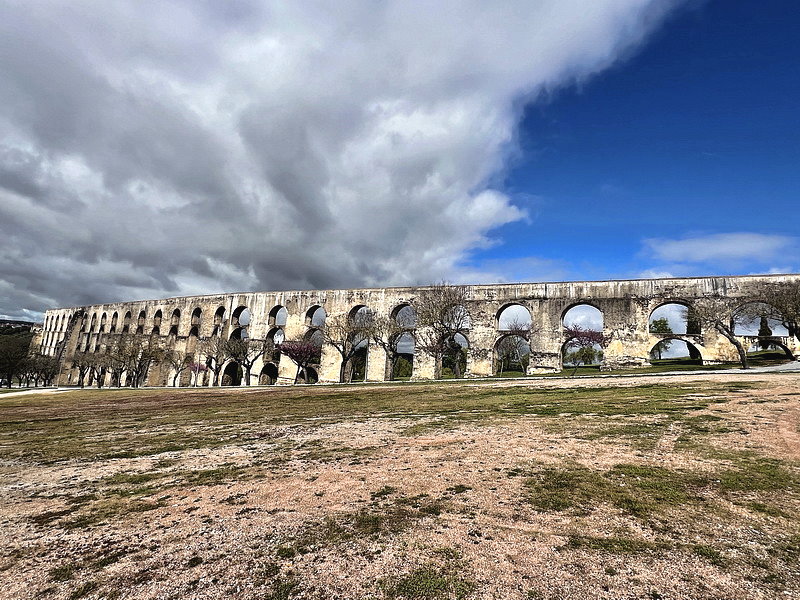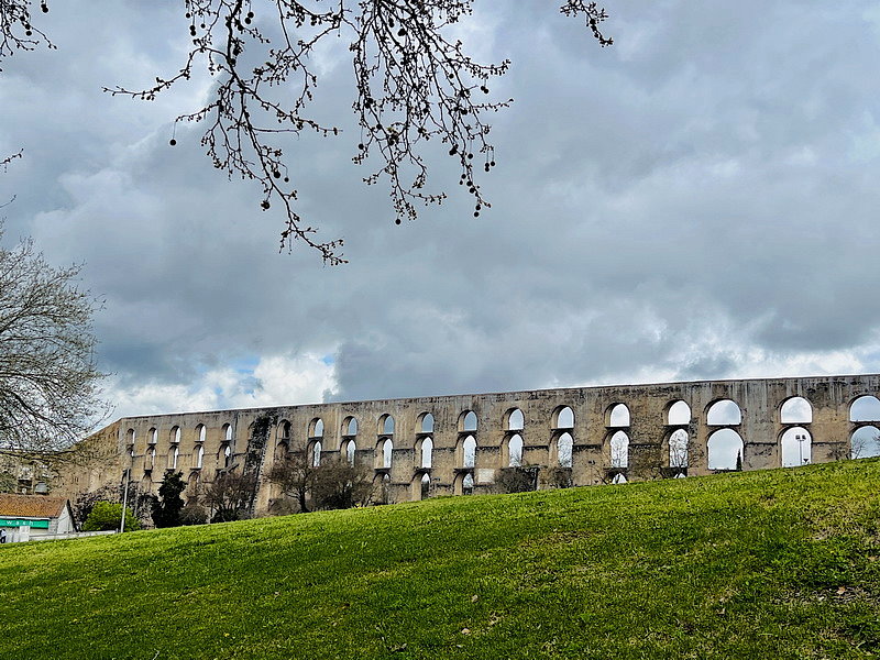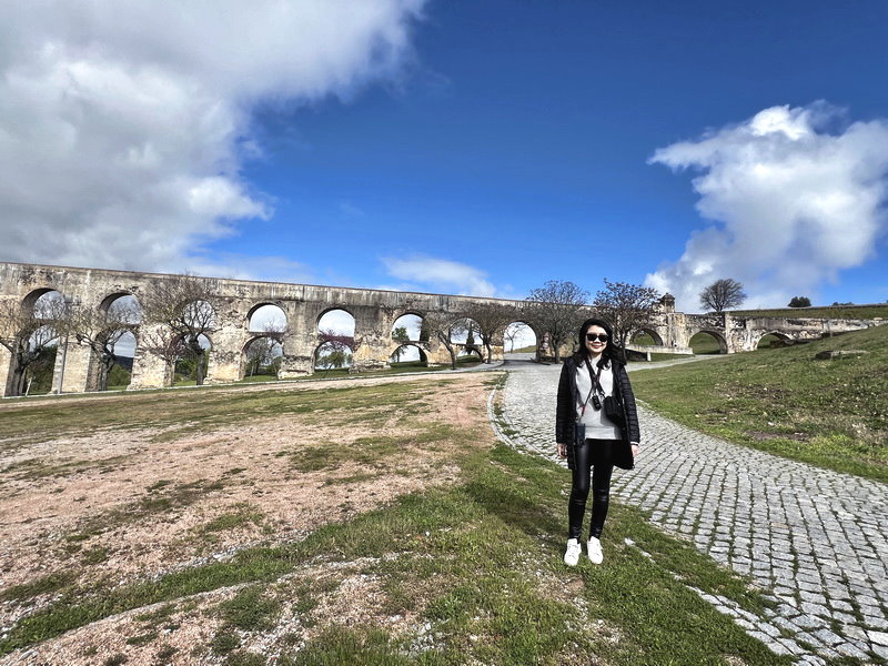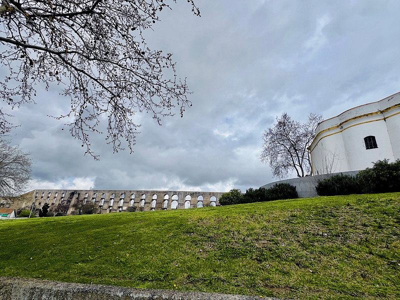 看見這一排壯觀的建築,還以為是城牆,其實是阿莫雷拉水道橋(導水管渡槽)Amoreira Aqueduct。