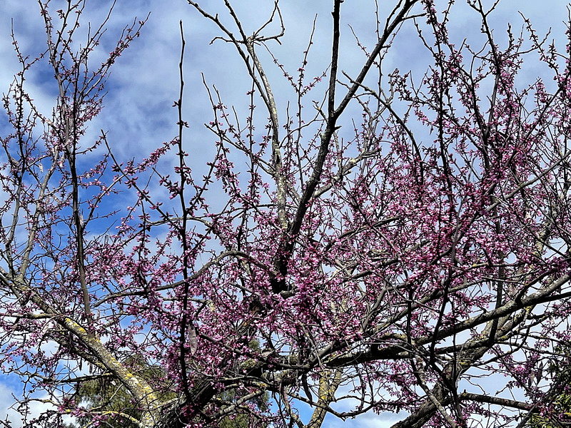 3月中的西洋紫荊(俗稱猶大樹),春季開花,裸露的枝條染上濃鬱的紫粉色,壯觀美麗。