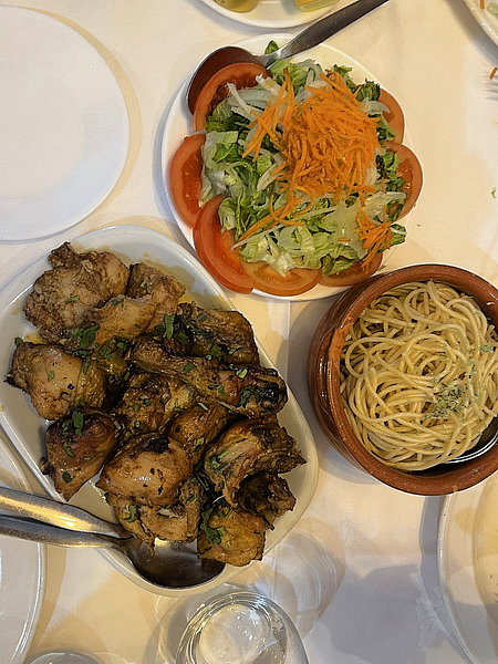 午餐時間;埃爾瓦什在歷史上經歷過多次戰爭,英勇無畏,如今這裡是一座安寧的城市,可為人們提供當地美食,如migas com entrecosto(麵包屑和蒜炒排骨)、ensopado de Borrego(燉羊肉)或carne de porco à alentejana(阿連特茹豬肉風味豬肉燴蛤蜊)。提到甜點,著名的ameixas dElvas(埃爾瓦斯甜梅)令人難以抗拒,同時還有sericaia(用雞蛋、牛奶和肉桂烤製的甜點),當然傳統的甜品azevias(甜南瓜袋)、nogados(油炸果餡餅)、enxovalhadas(檸檬和肉桂味蛋糕)和filhós(葡萄牙炸麵圈)也是必不可少的。