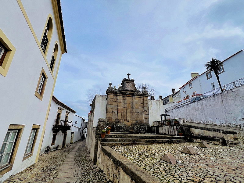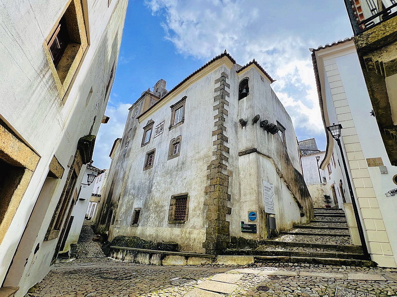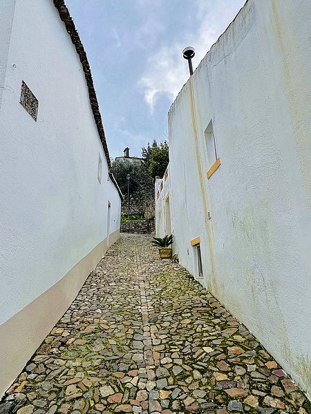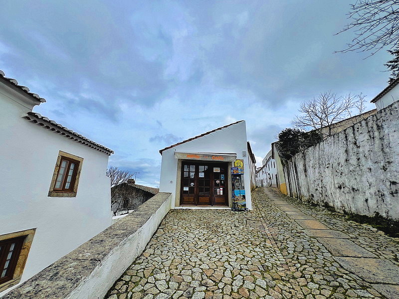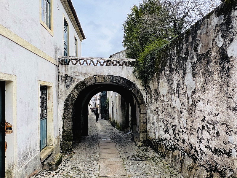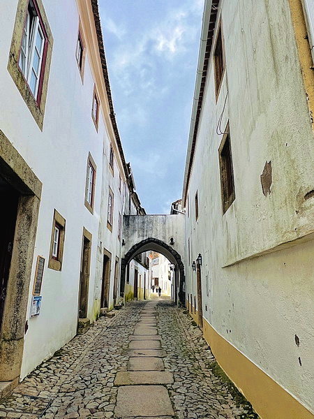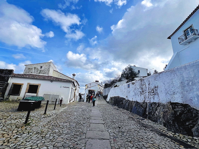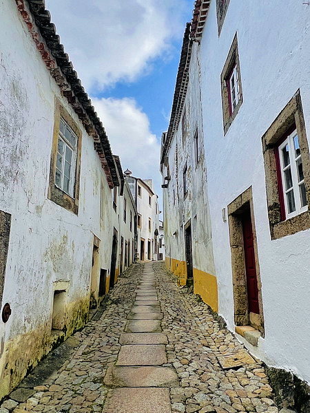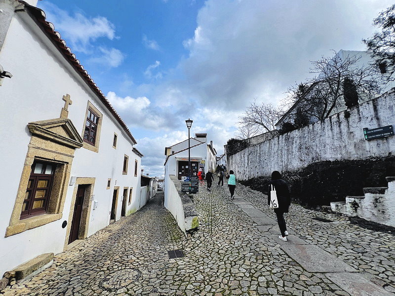 順著坡道走進來,曲折狹長的石板路,兩側的白牆房屋,白牆底部是葡萄牙黃,真是適合漫步隨手拍的景色。