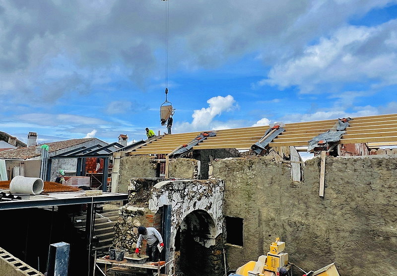 看到有人正在蓋房子,想到建材要運載上來也真是不簡單喔!