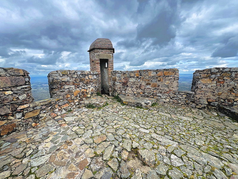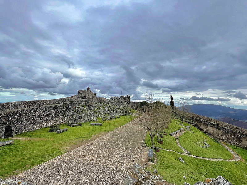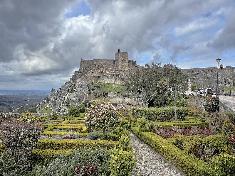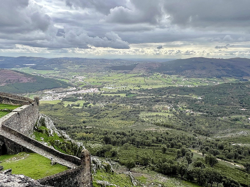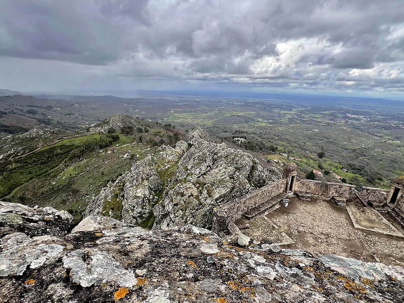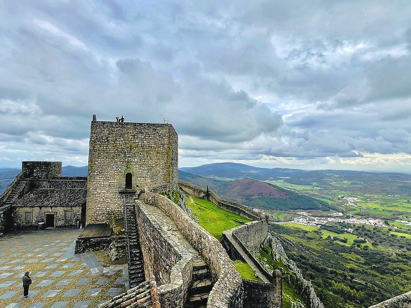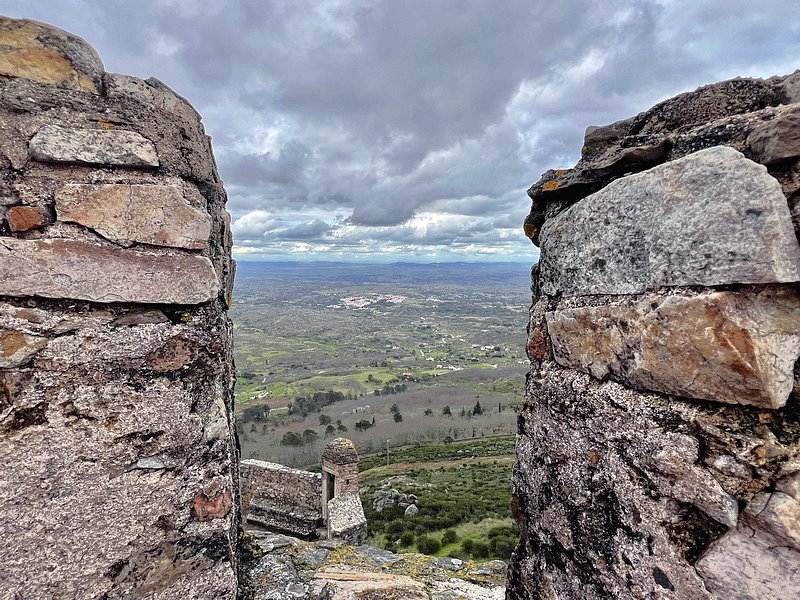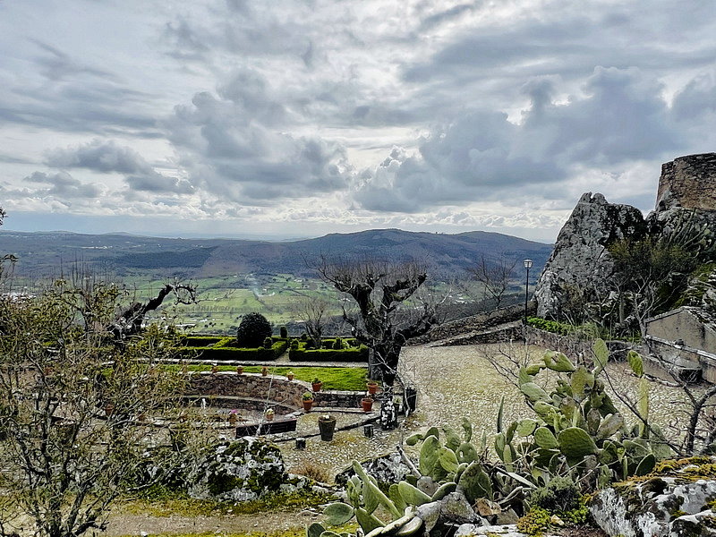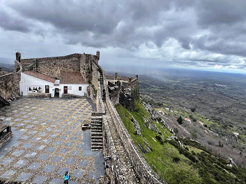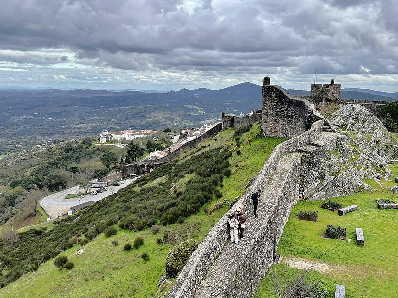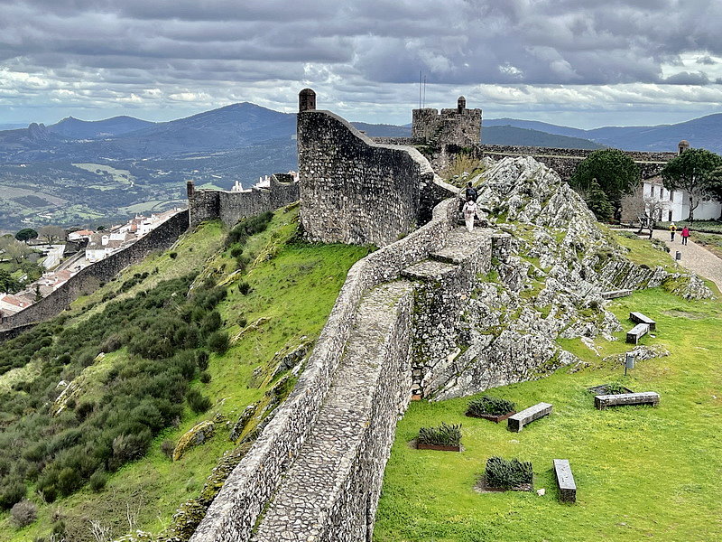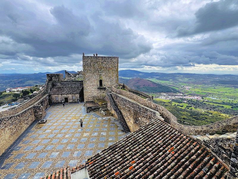 這座8世紀就開始建築的城堡擁有遼闊的美麗視野,可以見到馬麥德山Serra de São Mamede自然公園、埃斯特雷拉山森林,還可以見到城裡白色的房屋和迷宮般的街道,櫛比鱗次的白牆橘瓦,在山間跳舞。