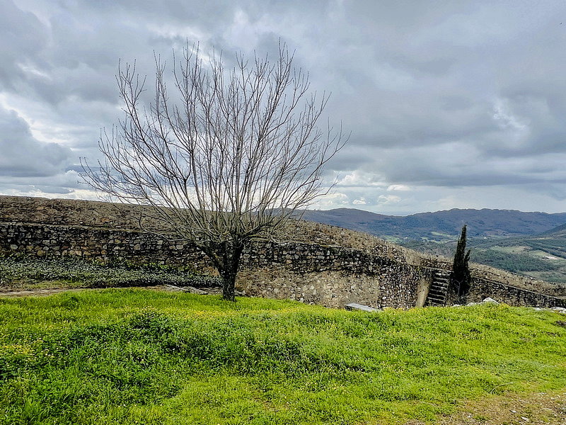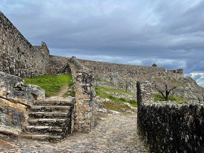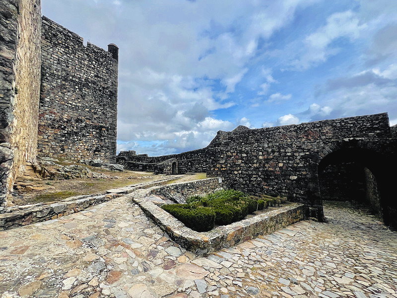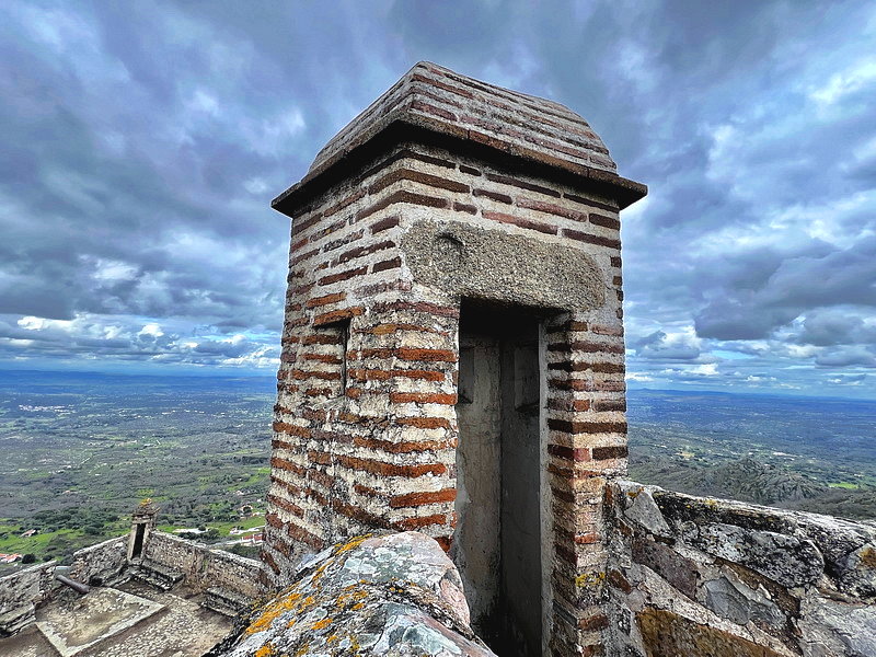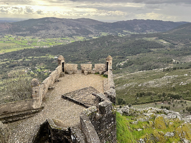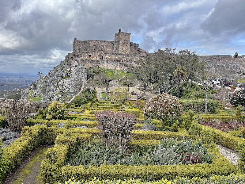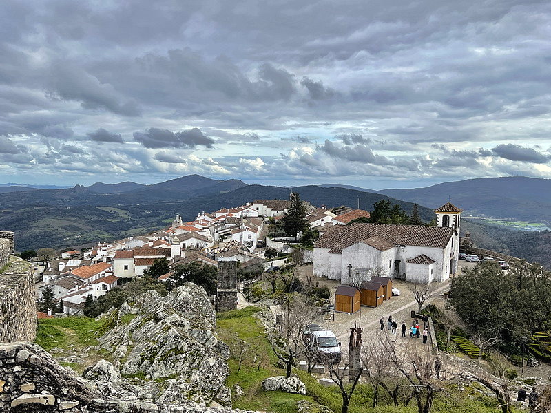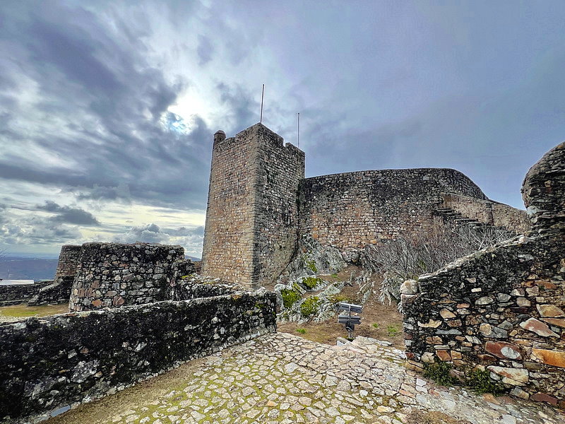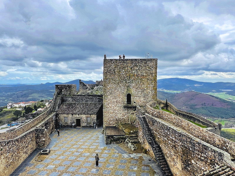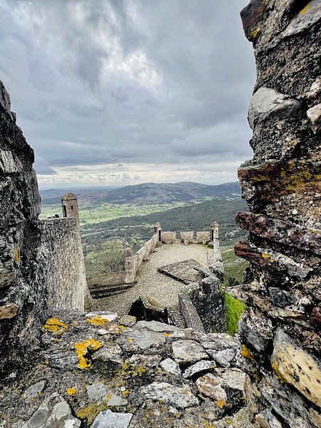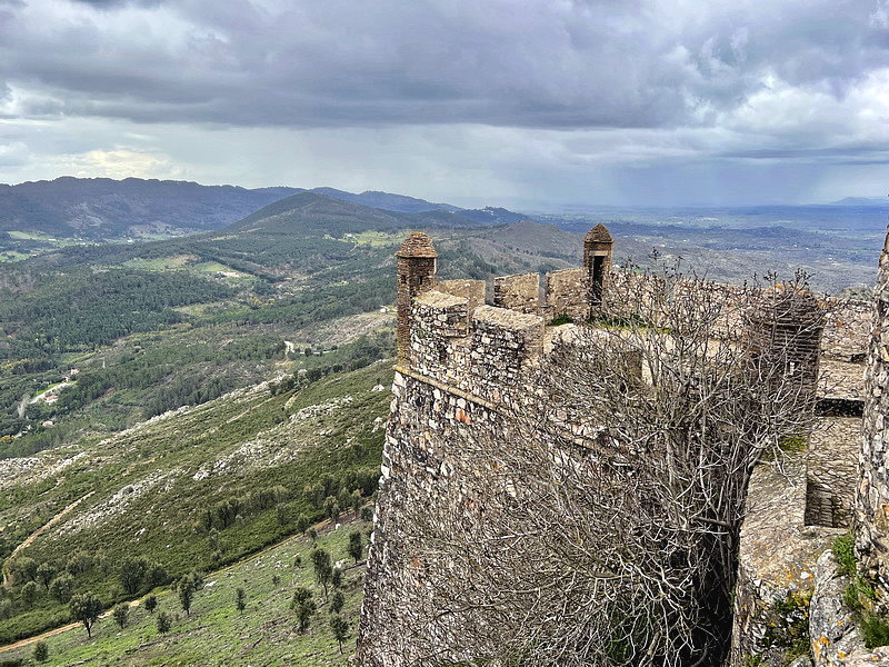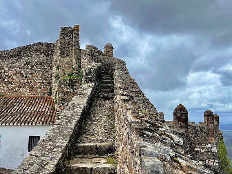 這座8世紀就開始建築的城堡擁有遼闊的美麗視野,可以見到馬麥德山Serra de São Mamede自然公園、埃斯特雷拉山森林,還可以見到城裡白色的房屋和迷宮般的街道,櫛比鱗次的白牆橘瓦,在山間跳舞。