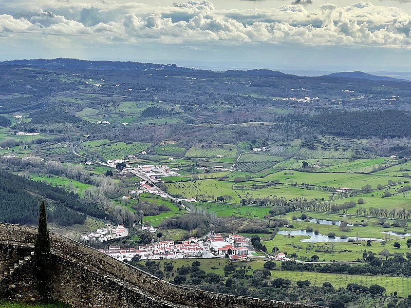 站在城牆遠眺,山下阿連特茹Alentejo平原的景色一覽無遺,平原上散落著點點的紅瓦白牆房舍,連僅有十公里之遙的西班牙也清楚可見。