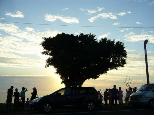 過去幾次來到恆春都沒到這兒走走,這回可不再錯過了,停好車,我和小影走向觀景台入口前的巨大石頭,上頭提著「關山」二字,許多遊客都在此與巨石合照,小影問我要不要跟這塊石頭拍一張?我搖頭笑回,如果只拍石頭還可以,要是連我也得入鏡,還是省省吧,我可不想害人眼睛受傷。 巨石後方是一段上坡,通往觀景台,小影哀叫連連。 她是標準的台北上班族,成天窩在冷氣房裡甚少運動,上下樓也是搭電梯,這趟南下可得東走西走,不禁苦笑說,這趟南下確實運動到了。 來到觀景台,眾多遊客齊聚在此,要取好角度拍照不太容易,同時,也不容易擠進小小的觀景台裡。等了好一會兒,我們終於走入露天觀景台,相機可以大方拿出來拍照了。 時間是傍晚五點半,太陽距海平面還有一大段高度,我和小影不禁懷疑,莫非南台灣的太陽滯留天空的時間較久?怎麼在北部就沒感覺過白天如此漫長?拍了幾張照片後離開觀景台,身旁遊客剛巧大嘆一口,太陽怎麼還那麼高呀! 若要以單純賞景的角度來說,關山確實有其賣點,尤其觀景台右側的海灣地形頗有殺記憶卡容量的資格,可,此處終究是熱門景點,我和小影都不喜歡人多擁擠的場合,等不到太陽落下便離開關山。 開車沿著山路行走,本來想繞去白沙欣賞落日--去年底與老弟到白沙看夕陽的那份情緒蔓延在心頭久久,以為這個時間去白沙也能看到同樣的美景。 車行經過一間廟宇時,我猛地踩了煞車,立刻停靠路邊下車;小影以為發生什麼事了,直到我指著海平面上的夕陽,她才發覺這裡的美絲毫不遜於關山。 馬路對面的廟宇叫做「西龍宮」,一棵大樹靜靜站在路邊,偶爾車輛經過卻沒人停下欣賞落日餘暉,我和小影見獵心喜,沒想到會在此碰到千載難逢的好機會,如此漂亮的夕陽美景,居然沒人搶著共賞? 兩個對拍照入迷的傢伙在此取了不少鏡頭,忽然,一輛廂型車停下來,一群香港遊客下車同樣在此欣賞落日。不久又有兩輛廂型車停在路邊,下來一票台中人在此看夕陽。接著好幾輛車子停下,一群不知從哪來的遊客也湊到這裡端詳海面上的金圓。 我和小影面面相覷,怎麼突然來了那麼多人,莫非這裡本就是知名景點? 夕陽逐漸落下,我走向香港遊客群的導遊詢問此處由來,長髮大哥笑說,這附近叫做「小關山」,是當地人才知道的景點,一般外來客都會帶到關山那兒去,只有在地人自己帶團才會來這裡,一來不用收停車費、二來不用人擠人、三來小關山的夕陽通常最美。 確實如此。 長髮大哥看了看我倆,說,下面路彎之後有在賣黑輪,那才是小關山名氣的由來,不妨去吃吃看。離開西龍宮的第一個路彎繞過後,果然看見路旁停滿滿的車輛,小關山黑輪的人氣之旺,一目了然,可惜晚餐已經規劃好了,這份黑輪就先欠著,改日再續。 美麗的夕陽餘暉,原來不必人擠人就能欣賞得到。 |