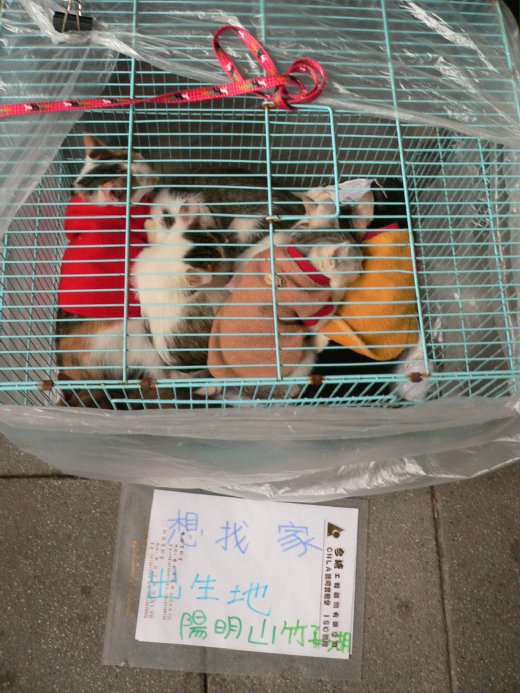 有些人,站得遠遠地看,不敢靠近, 有些人,走過來摸一摸,卻又無能為力地離開。 台北建國花市,每個周末與周日, 信義路人行道上,總是有一群男男女女, 大部份是阿嬤級的人, 手裡抱著剛撿來的寵物,有的是狗、有的是貓, 在那裡免費送給有緣人, 如果你是有愛心的,也正好想養隻寵物做伴, 真誠地建議你,不妨利用假日到建國花市走一趟, 這裡有許多無家可歸的小生命等著你, 不需要花大錢,也沒有任何負擔(養了不適合可退), 希望大家多多領養流浪貓狗。 |