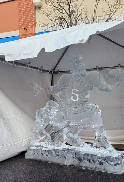 冰宴中的雕冰大賽,每個人可以投一票 上頭雕的是我們這一區橄欖球隊 (Washington Commanders) 的5號選手Jayden Daniels #IceFest @Village at Leesburg Virginia 每年這社區都會辦冰宴 2025就辦在上星期六 問老三:要不要去? 她回說:不要🤣🤣🤣 我猜也是, 因為去年我們才剛到Icefest, 她就吵著要回家🤔🤔🤔 我一個人藉著買菜的理由(社區有Wegmans超市), 拍了5分鐘就走人了🤣🤣🤣🤣 阿就~快~狠~準🤪😜😝😝😝😝ㄚㄚㄚ