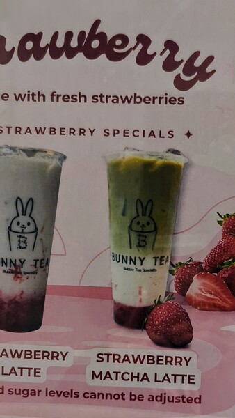 昨晚社區兔茶 Bunny Tea @Brambleton Virginia 社區Town Center晚上真的蠻熱鬧, 可惜我年纪愈大,愈喜歡安靜, 昨晚老三在圖書館有活動, 原本我想叫歐八或老大送她去圖書館, 想想算了,我顺便想看圖書館內新的畫展, 八點多結束後, 去了對面的Bunny Tea 🍓春天有新品🌸