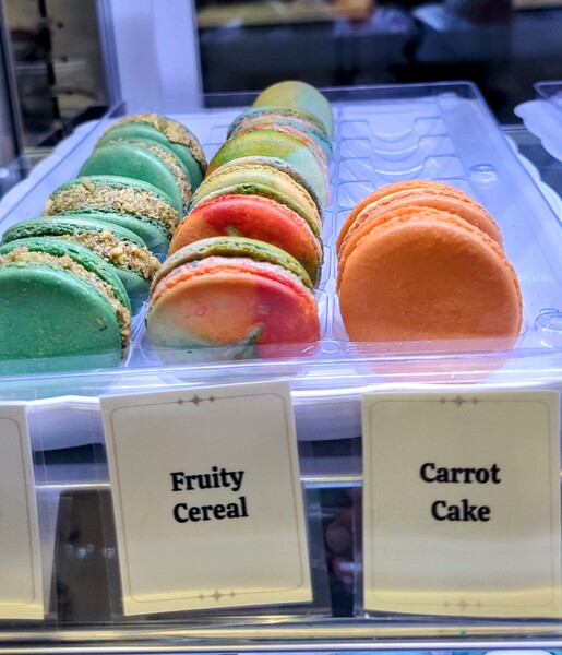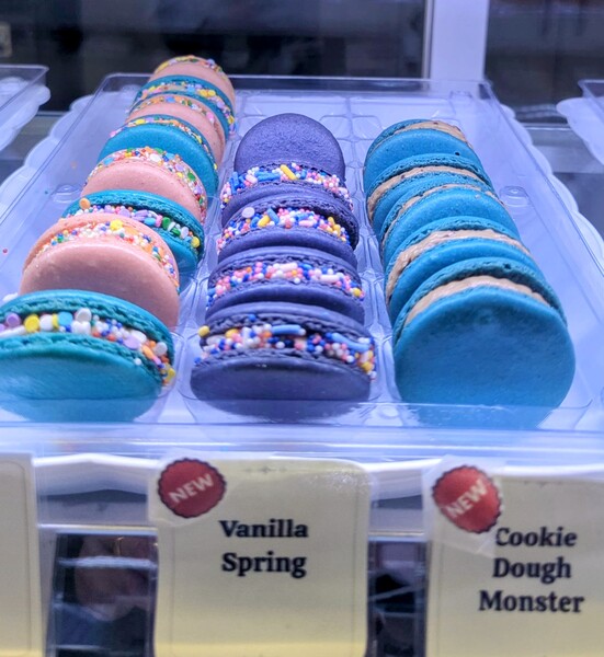 店內的甜點在燈光下,超誘人😍 各式口味馬卡龍
