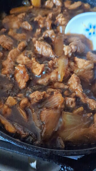 米蒸成飯之際,來做滷肉! 冷鍋放油