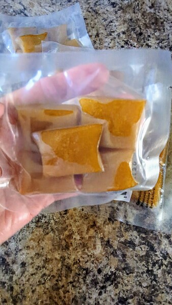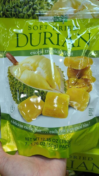 昨天在好事多買了一包美國製榴槤乾(軟的)