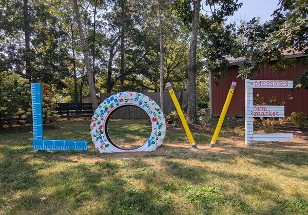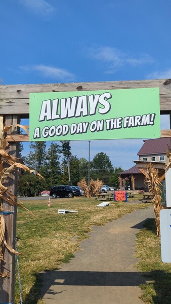 @Messicks Farm 6025 Catlett Rd, Bealeton, VA 22712 昨天去公婆家,回程順便去 農場吸收一日月精華😁😁😁 這個農場離我家開高速公路要一個小時, 但是從我公婆家開小路只有30分鐘! 我喜歡農場門口的愛(Love sign)招牌 每個季節都會變換! 剛開學,所以V是兩個支鉛筆插成的😁😁😁
