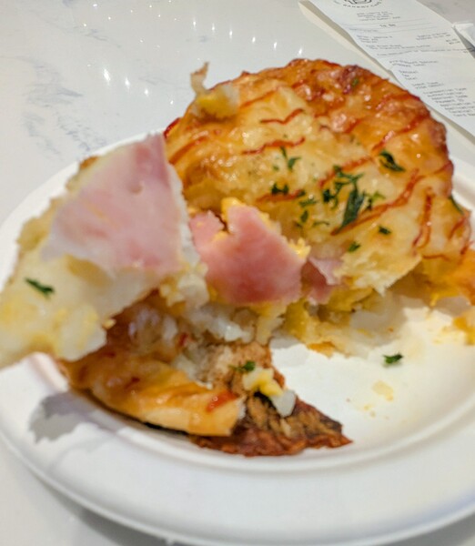 切開裡面包有土豆煎餅,Ham和起司
