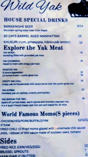 點了 Yak Momo 8個14元美金 Yak 咖哩 23元美金 Crispy Yak chili 🌶️ 19元美金
