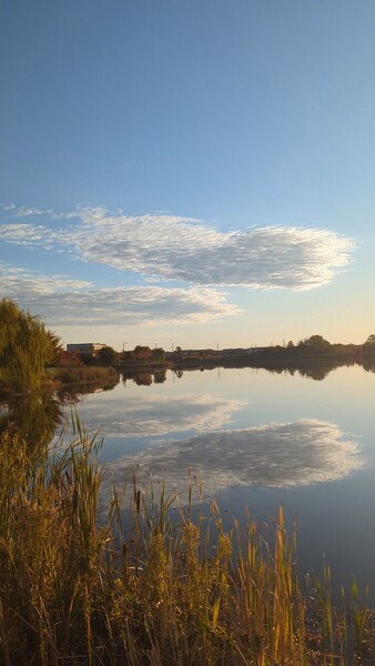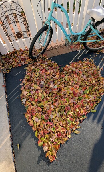 後院的秋葉落了一地, 堆一個愛心送大家♥️❤️♥️ 在社區散步...白藍也飄得挺愛心😁😁😁
