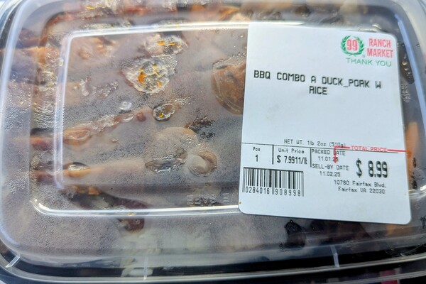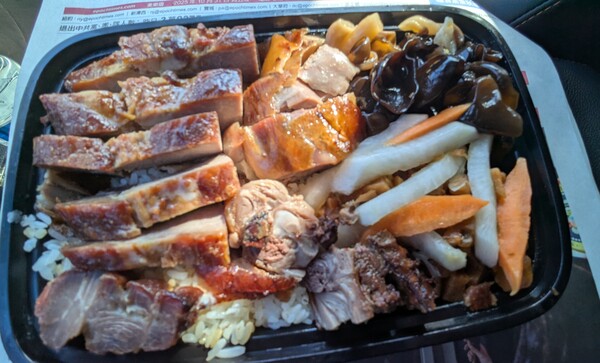 上週末去大華超市買的烤鴨、豬兩拼便當 一盒8.99元美金未稅
