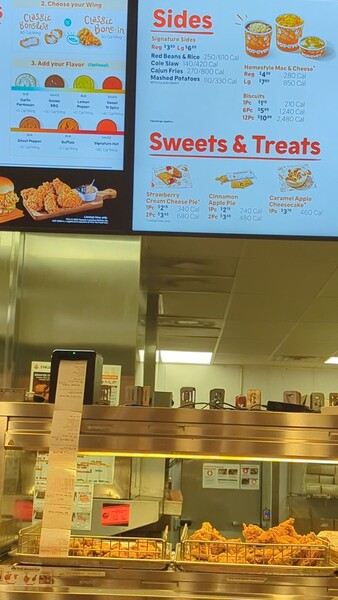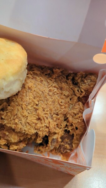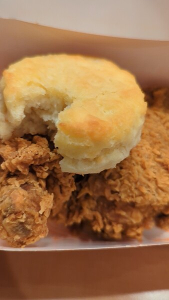 我點兩塊炸雞附一個比司吉和兩個side dishes