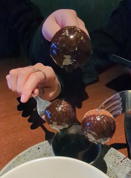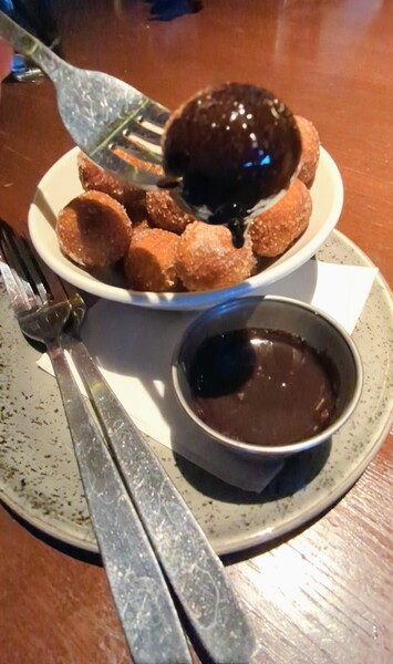 飯後甜點 donut holes with chocolate sauce
