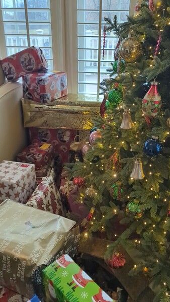 拆完聖誕禮物的樹! 旁邊那一堆禮物是給歐香和他女朋友的!. 他和他女朋友破病(重流感), 所以没有一起來拆禮物