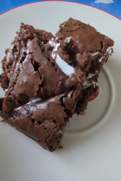 聖誕日清晨在家做做成本約150元台幣的布朗尼 還有加棉花糖(聖誕節日款) 没啥裝飾,切一切拍照留念一下, 整盤就被掃光, 還是新鮮剛出爐的布朗尼好吃👍🏼👍🏿👍🏻👍🏽 材料簡單: 十二人份(每人兩塊),所需時間:40分鐘 蛋2粒 油1/3杯 水30克 市售布朗尼粉和棉花糖霜各一包 作法: 烤箱先預熱350度F(175度C) 盆中放蛋、油、水打匀