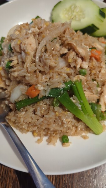 小朋友點得雞肉炒飯 15.50 第一次看到炒飯的蔥切這麼大段的, 對不愛吃蔥的人,應該是福音吧! 直接拿出來丟掉!