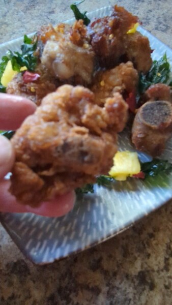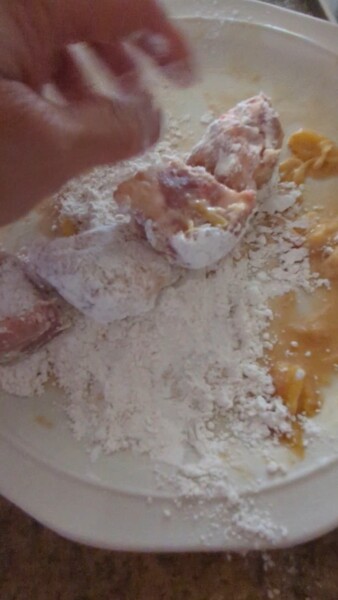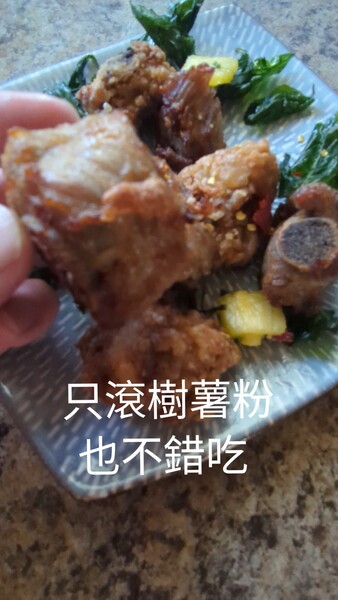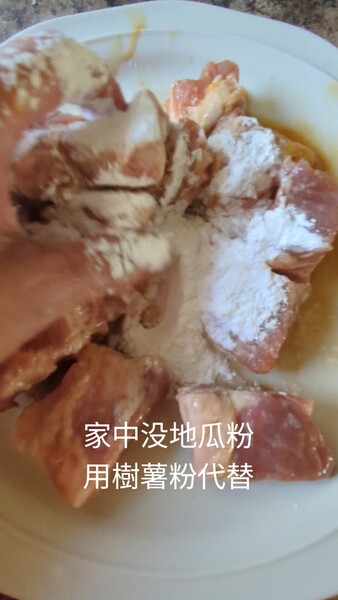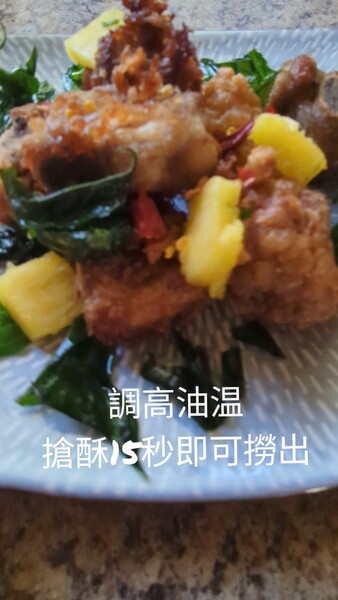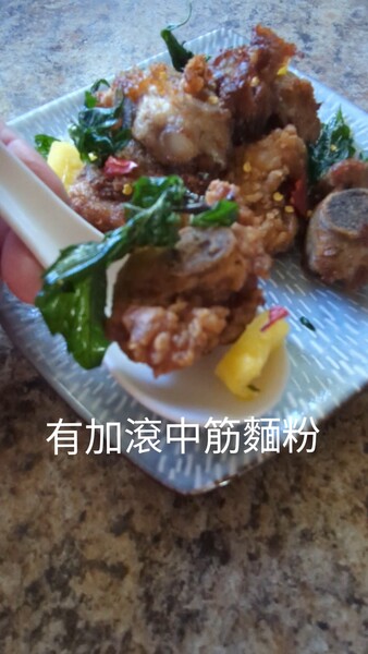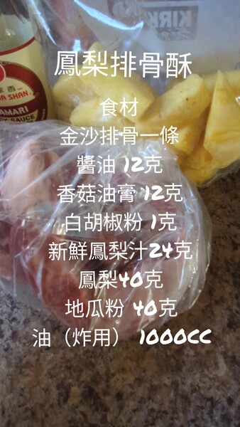 【食譜】鳳梨排骨酥 在好運來超市買了兩條金沙排骨 一條煮湯,一條做成排骨酥 順便把鳳梨殺一殺,就成鳳梨排骨酥 忘了家中地瓜粉用完了, 想說用樹薯粉來替一下, 没想到一下油鍋就糊了🥺🥺🥺🥺 失算Y失算, 用中筋麵粉用一下也很OK