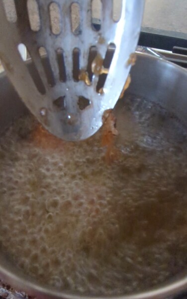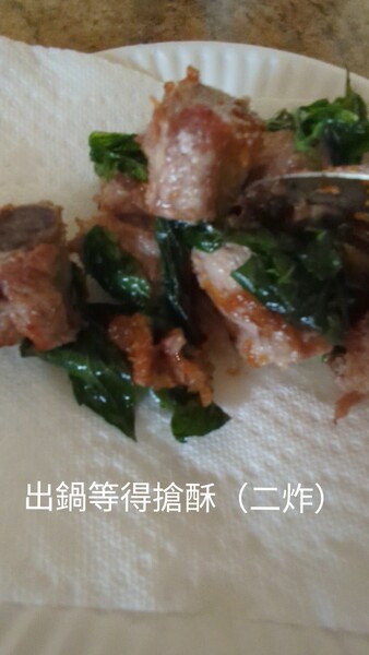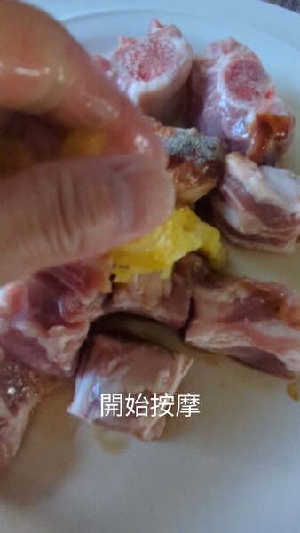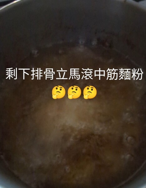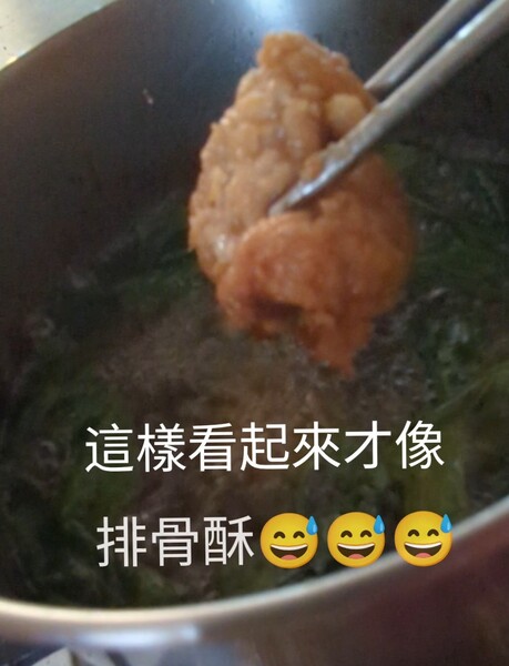 中火熱油鍋三分鐘,丟入排骨 炸至兩面金黃,撈出