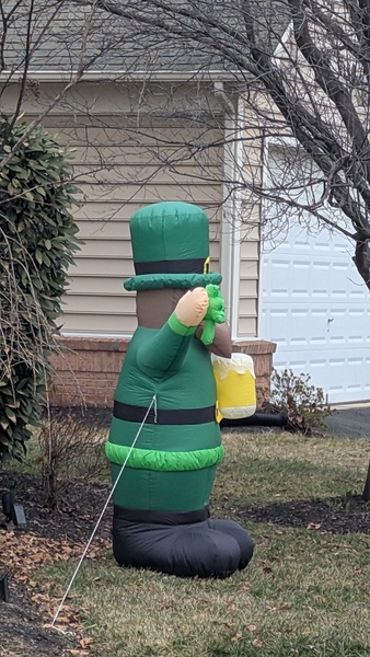 愛喝啤酒的愛爾蘭綠老頭又肥來了! 鄰居每年三月都會來一次! 他對面的鄰居放的是綠恐龍, 就為了慶祝愛爾蘭的 St. Patricks Day 說到愛爾蘭... 番媽曾經在診所搞笑了掛號姑娘, 當時 Checked in 的時候, 姑娘看了看我的姓驚訝說:妳不是愛爾蘭人?🤔🤔🤔 我大叫: 不是啊~但我老公是🤣🤣🤣 後來我才知道原來歐八的姓 是眾所皆知的愛爾蘭大姓.... 友人一聽到歐八是愛爾蘭人 就說:愛爾蘭人狠兇的🤔🤔🤔 早說嘛.... 早知道歐八會咬人,老娘就不嫁了🤣🤣🤣 Hello