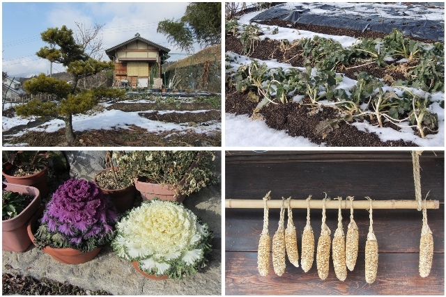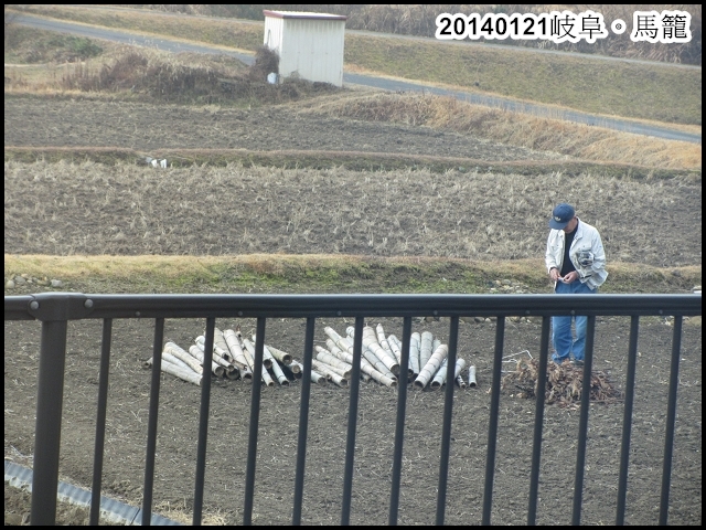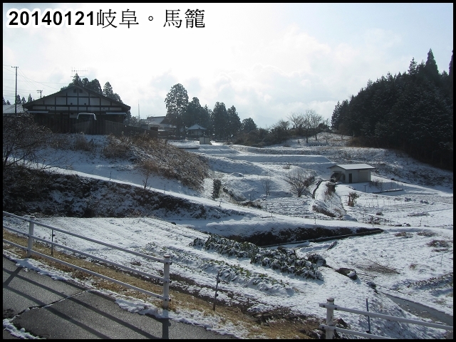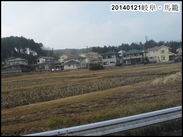 遊覽車先走了一段回頭路,終於順向的我,還是沒能幫友人拍下她眼中覺得特別的教堂!看來每個人眼中的特別,還真的都是特別啊!車子緊接著往馬籠(Magome)方向前進,窗外的畫面從一棟棟較密集的建築,轉變成一大片枯黃蕭瑟的畫面,慢慢的,殘雪也出現了。