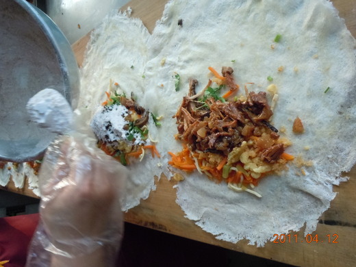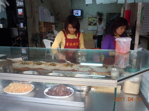 我是無意中發現馬英九夫妻都喜歡吃潤餅捲。 2000年馬英九第一次競選總統,常到我的選區來。因為行程緊湊,都在車上用餐,但餐餐吃便當也膩,所以我常買當地最有人氣的潤餅捲給馬英九和他的隨扈吃。他的隨扈告訴我,馬英九不只自己愛吃,還交代帶一些回去給也愛吃潤餅捲的美青姐吃。 我常買給馬英九吃的潤餅捲有二家,今天先介紹「幸福潤餅捲」。這家潤餅捲中部有5家店,可見得好吃,才會一直開分店,而且每家店經常大排長龍。 幸福潤餅捲是彰化口味,特色有三,一是加白糖粉,取代常見的花生粉,口味偏甜;二是用滷肉當餡料,魯肉有一點點肥,吃起來可以綜合蔬菜的乾澀;三是餡料中的高麗菜和豆芽菜較爽脆,有別其他潤餅捲的蔬菜煮得較軟潤。另外,潤餅只包紮一邊,另一頭開口,所以感覺上個頭兒比一般潤餅還大。 除原味外,還有無糖(不加白糖粉)、瘦肉、不加肉、素食、辣味、芥末等口味。目前一捲40元,買10捲可外送。 5家店中我去過台中三民店(在北區一心市場三民路上)和台中水湳店(在北屯區大鵬路上),其他三家沒去過。5家店老闆都是親戚不是加盟的。 |