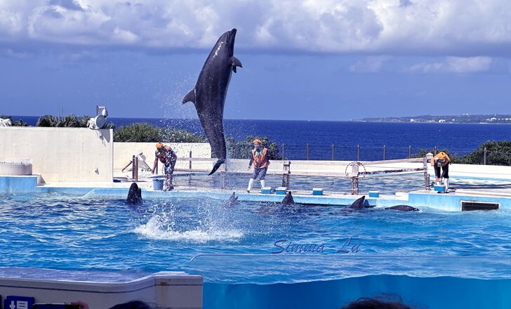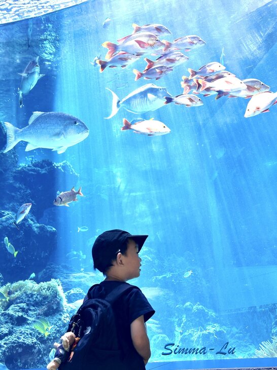「美麗海水族館」 鎮館之寶:黑潮帶的巨大鯨鯊,身長8公尺 必看表演:海豚秀 鬼蝠魟、各類熱帶魚、多彩珊瑚群 兩個小時的行程~精彩盡收
