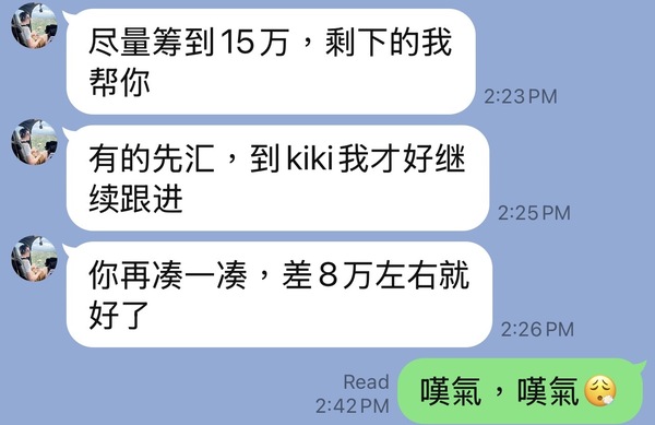 8/24/2022 他再次逼我借錢,語氣更急。