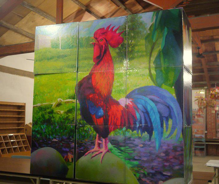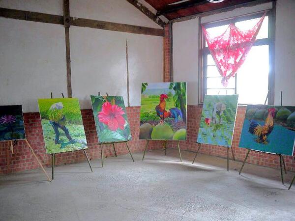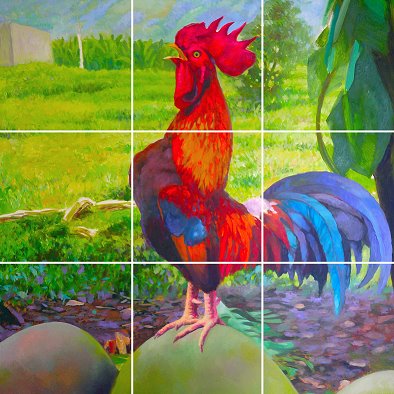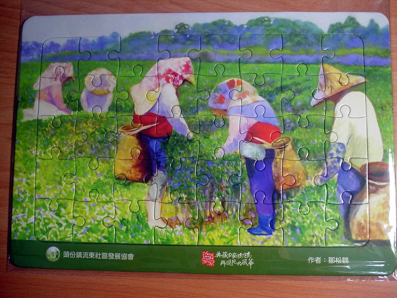 流東駐村藝術家鄒老師經過一個暑假的努力,十餘張畫作都接近完工階段。這次秋收茶柚節除了展出他還在努力中的畫作外,也將他美麗的「畫我流東」作品做成大小拼圖,供喜愛的朋友們欣賞及珍藏:農家樂、流東社區最臭屁的公雞、 流東客家大院美麗的荷花、左下角最後一張猜猜這是什麼?答對有獎~(本圖片版權均屬鄒松鶴老師所有)