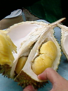 喔耶 明天要回台北家了 !! 現在去兩個家都是用 ” 回 ” 現在要 ” 回 ” 台北 到時要 ” 回 ” 吉隆坡 因為是回家 很多生活用品都不用帶了 連衣服都帶得不多 但是整個大箱子 都是各種馬來西亞的食物、名產 要拿出從瑞典回台灣時的魄力 扛行李了 !! 要回去的前夕 心裡突然有很多的感激 很感謝偉男的家人 給我很多的接納和關心 讓我在這三個月中 可以好好的適應新生活 婆婆買了很多潮州月餅給我帶回去 ….. 很像又要出嫁一次去送餅 公公也一直跟我說玩得開心 大嫂也抽空陪我出去買土產 想一想 這三個月 真的不是我一個人在適應 每一個人 都一起開始了新的關係 新的生活 自己也越來越能打開心 認識每一個人 之前有一段時間 對要認識 ” 新朋友 ” 覺得很懶惰也很毛躁 總覺得 新的事物要經歷的太多了 還要建立新關係好累喔 又很怕常常想念家 會跟偉男說 : 認識新朋友會讓我想念老朋友 …. 這一類的爛藉口 總之是一種逃避心態 但是今天卻發現不知不覺的 在很多人的陪伴和支持下 已經往前走了很重要的一段路 昨天要離開偉男的分店時 有點捨不得呢 想說好久看不到這群天天出現的客戶 叔叔伯伯阿姨嬸嬸爺爺奶奶 還有店裡其他的職員們 又再想說回台灣要多太些東西回來跟他們分享 昨天竟然做了一件我來馬來西亞一直不願意做的事 吃榴槤 !!!! ( 我竟然吃榴槤了 ) 已經很多次很多人跟我一直說榴槤有多好吃 尤其是馬來西亞本地的榴槤 是無與倫比 每一個人都說讚 ! 但是不管周圍的人怎麼形容、怎麼遊說 我就是 連試都不想試 ( 其實我在新加坡是吃過一次的,但吃完頭很昏 … ,但又不能拿這個說服馬來西亞人,因為他們說會 : 馬來西亞的榴槤不一樣 !) 每次遇到這種情況 我都不客氣說 我覺得很臭 壓根 不想體會他們所說的 ” 聞久了就會發現很香 ” 有些人會說 :” 來馬來西亞一定要吃 ” “ 甚麼都要試試看 ” 我就更是不想 ( 悖逆阿 ) 其實是心理層次居多的 會反感 被要求一直接受明明就在認知理解讀為不想接受的東西 周圍的人越是異口同聲 我就 越想為自己保持距離 但不知道怎麼了 這兩個星期以來 好幾次我聞到榴槤味 第一時間都解讀為 甜味 正值盛產的季節 到處可見榴槤堆成的小山 ( 誇張了 ) 看著人們買榴槤、切榴槤、吃榴槤 … 堆著滿地的榴槤殼 突然覺得 沒有需要大驚小怪 像是這裡生活的一部分 而且他們很享受 這是我看得見的 我只能說 我腦袋發生了一些改變 並且答應了朋友的邀約 一起去吃榴槤 進入的榴槤老闆的帳篷 哇 ! 原來榴槤有這麼多不同的品種 就這樣 開了顆榴槤 吃了榴槤 …… 很甜 滿滿的甜味 溫溫熱熱 軟綿綿 很像在吃一種甜點 但又有一般水果的氣味 坐在店裡 是真的不臭耶 總之 就是 ” 榴槤味 ” 專家朋友 帶我吃的是高級的品種 深怕我第一類接觸受傷 以後再也不吃
