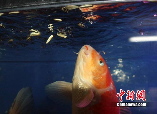 天下奇聞無所不有 庫爾勒人家錦鯉會嗑瓜子(圖) 2010年12月26日 22:26 來源:中國新聞網 這就是那條會嗑瓜子再把瓜子殼吐出的魚。 作 者:吳朋 中新網烏魯木齊12月26日電(苗美鬱 吳朋)雖然說是天下之大,無奇不有。但是魚能夠嗑瓜子,這事聽起來還是讓人覺得挺奇怪。新疆庫爾勒市居民王德兵家魚缸裏養的一條日本錦鯉,就能夠嗑瓜子。 26日早上,記者帶了一包普通的葵花籽來到王德兵家,一進門便看到他家的錦鯉魚放在了客廳陽臺上一個長1米8,高60公分的魚缸裏,這是一條長約50公分、重2.5公斤的日本錦鯉,顏色是紅、白、黑三色為一體的大正三色。 當記者把隨身攜帶的瓜子放到魚缸裏時,聞到了瓜子香味的錦鯉,立即從魚缸底部遊上來,一張嘴,就把浮在水面上的一粒葵瓜子吞了去,然後它又遊向水底;隨著魚鰓和魚嘴的一張一合,半分鐘左右的時間裏,瓜子殼就從魚嘴裏慢慢吐出來了,分成兩三瓣兒的瓜子皮浮到了水面上,瓜子仁兒已被吃得一乾二淨。 市民王德兵告訴記者,這魚是去年10月22號的晚上,家裏人扔了兩顆瓜子在魚缸,那個時候魚缸裏有6條魚,一下子就把瓜子搶光了,快的半分鐘,它就把皮吐出來了,當時就覺得奇怪,這個魚咋會像人一樣會嗑瓜子?我覺得這個魚挺奇怪的。 其實這條錦鯉不僅會嗑瓜子,還能把剝了殼花生仁吃到嘴裏後,在不到一分鐘的時間裏,把花生仁吃到肚子裏,花生仁薄薄的紅皮,則被它完整從嘴裏輕鬆吐了出來。 多次來王德兵家觀看錦鯉嗑瓜子、吃花生過程的市民陳仁爽告訴記者。“發現那魚能吃瓜子,好神奇啊,因為從沒見過魚會嗑瓜子,它還挑食,白味瓜子它不吃,它就吃五香的和奶油的,買的瓜子花生扔過幾次都能吃。” 但是,魚究竟是怎樣把瓜子吃進去又吐出來的,是不是真的像人類一樣,把瓜子在牙齒上一嗑,把瓜子仁給吃下去呢?相關專家也無法給出確切答案,王德兵表示,如果相關機構和人員需要錦鯉做學術研究,他將無償捐出這條細心養育的錦鯉。 http://big5.chinanews.com.cn:89/df/2010/12-26/2747040.shtml ============================================================= 從照片上看來真的像是嗑了瓜子,可魚怎麼嗑瓜子來著?真奇怪! |