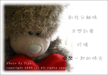 來不及完美的, 來不及未來的, 都已是殘缺的宿命 多少年後 或許我會想起,曾經 陪你哭,陪你笑 陪你掙扎分手的 心痛 ~sinyee
