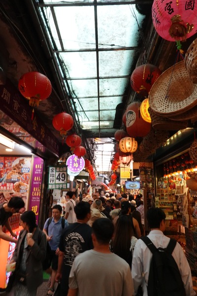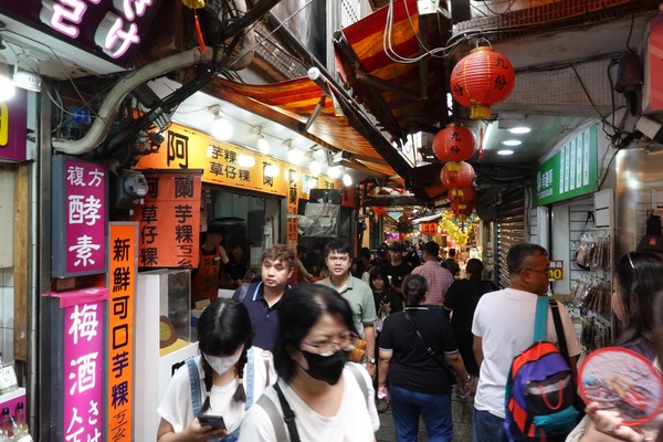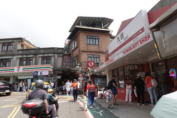 遊客來到九份,通常是由基山街走進,這一條街也因此是最熱鬧和各式各樣商店和各種味道混雜的一條街,有賣冰水也賣熱或炒的食物,有味道香或臭的。有賣新穎的飾品也有懷舊的物品,都有遊客入內逛逛。百年的山城或許展現更大的包容,才能吸引更多的遊客來到。另外值得一提的是這山城的公共廁所已經改建得新穎、 明亮、 和衛生。由公共廁所可看出一個地方的進步情況。 2025年5月17 基隆九份