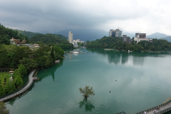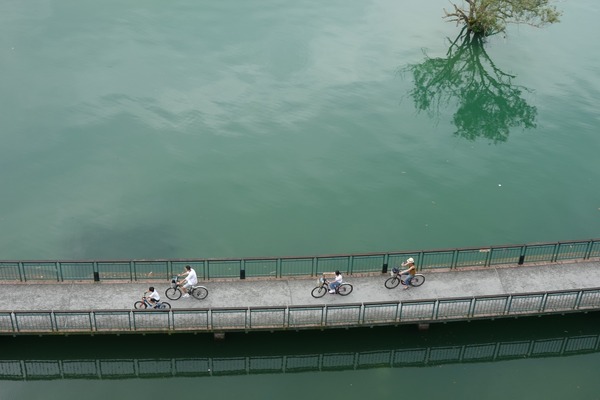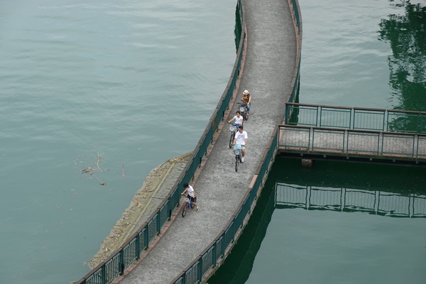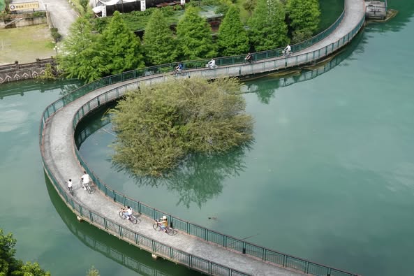 來到日月潭,除了散步看風景,還可以跨上自行車騎一段路,沿途由不同角度欣賞碧綠的潭水和風景。今年的潭水較滿,景色也更美。 2025年5月23日