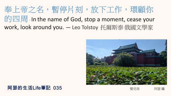 In the name of God, stop a moment, cease your work, look around you. ― Leo Tolstoy 托爾斯泰 俄國文學家