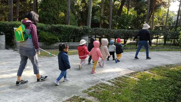 早晨的植物園,看見幾位幼兒每一人拉著一條繩子的一端,隨著在前面引導的老師,一齊向前走,後面還有一位老師看顧每一位小孩都不會走失或落後。不知是誰想出用繩子來控制一個小團隊的節奏 、方向和聯繫,真是一個可愛、有趣、和務實的好方法。 2024年1月攝於台北植物園