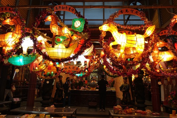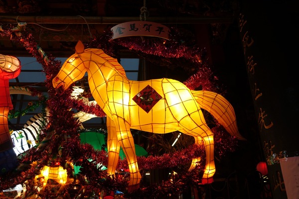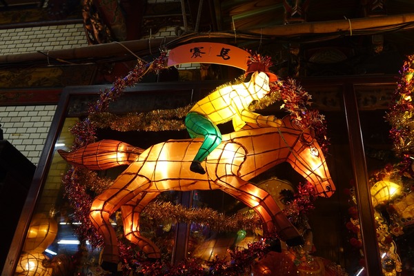 新竹城隍廟依循傳統,在元宵節時展出今年馬年的花燈,然後再選出得勝的花燈,在廟的中央掛起展出。往年元宵節花燈時來看花燈的人很多,那時民間流傳在燈下看花燈會出「丁」(台語與燈相近),所以想求生男的婦女就會來在燈下走動。現在展出的花燈還是以手工製作的為主,而大型的花燈就以電動或科技的方法展出,其風格就更有變化 2026年3月攝於新竹市