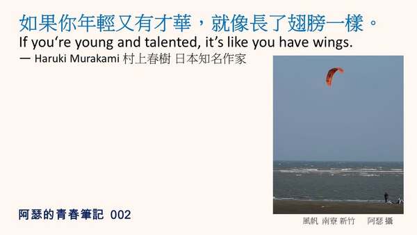 If you‘re young and talented, it’s like you have wings.― Haruki Murakami 村上春樹 日本知名作家