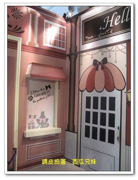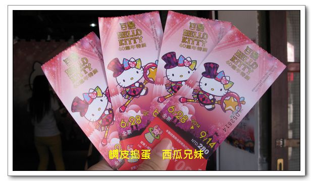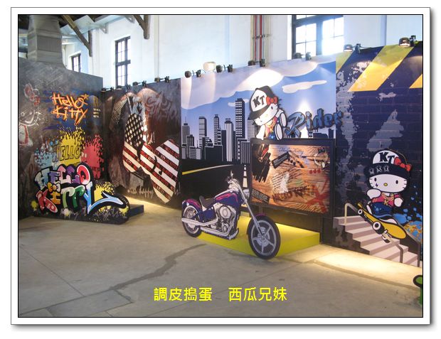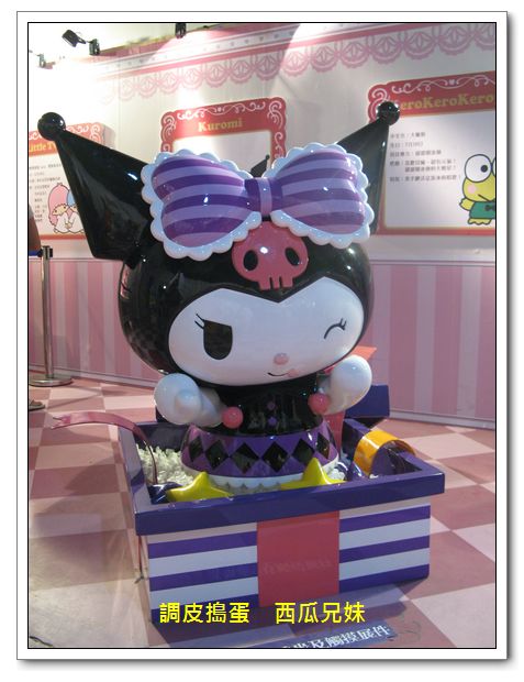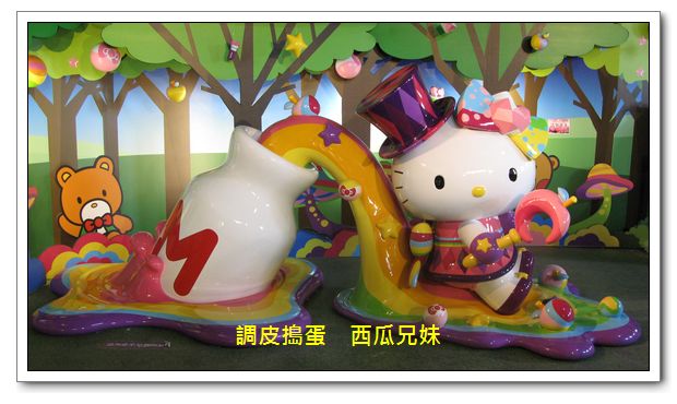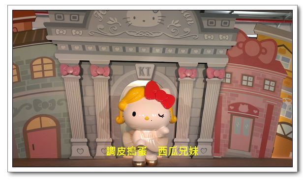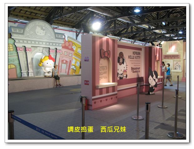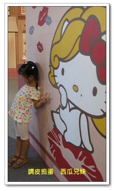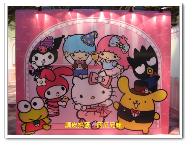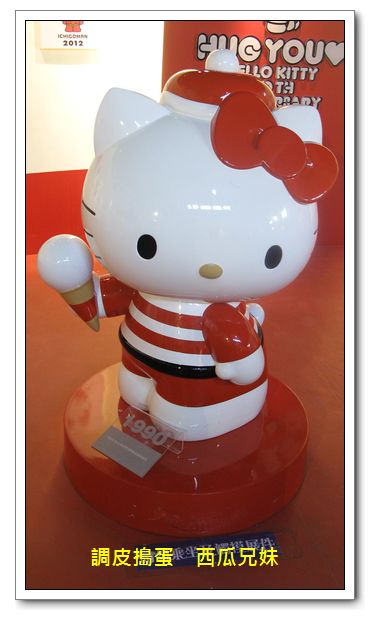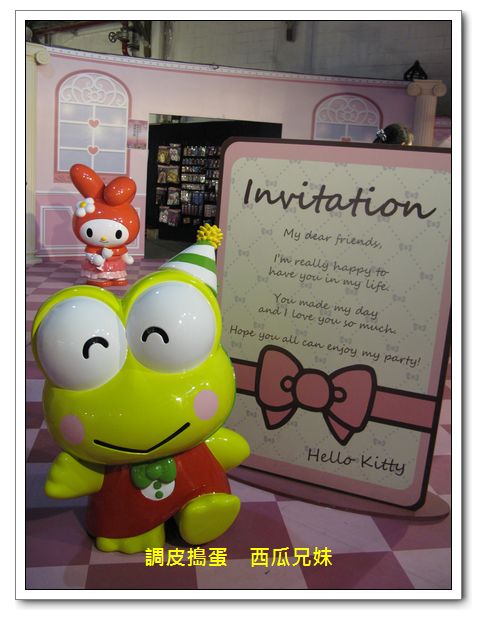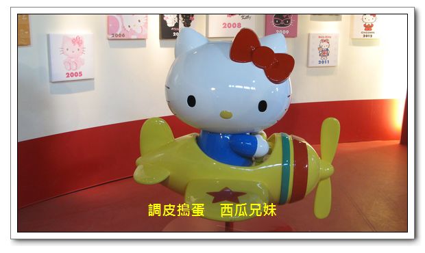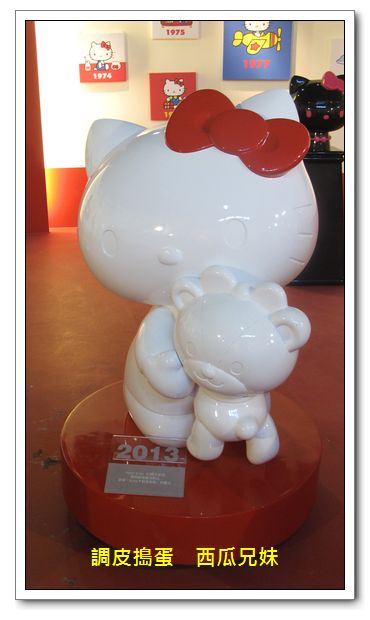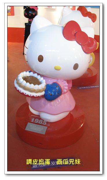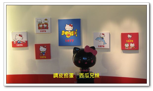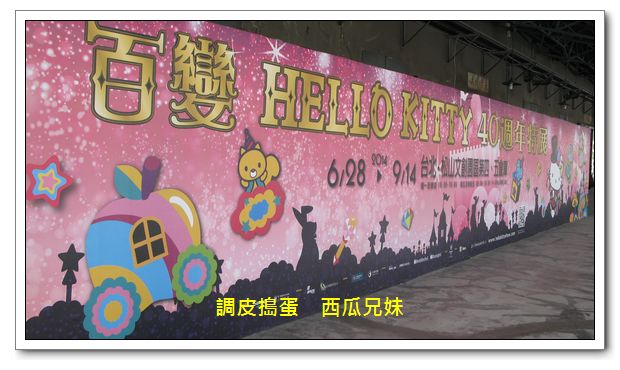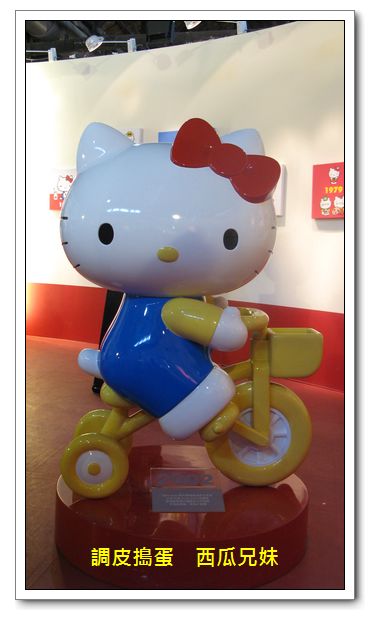 出遊日:103.09.13 Hello Kitty一直是我的最愛,這次在台北舉辦40週年特展,當然要來好好捧場一下囉!順便看看,這隻無嘴猫40年來的變化,百變的造型。 售票口 大型海報,陳列在外圍圍牆 本次活動的主要服裝 準備入場囉~ 一進入展場,就看到一隻隻造型不同的kitty醬,站立在各處 每隻都會標上她是哪一年的主打造型 這隻紅白條紋的kitty,是1990年生的喲! 哇~還有黑美人呢... 1985年的kitty,拿著好吃的蛋糕 騎腳踏車的kitty也很經典喲! 很可愛的飛機kitty 今年40週年的造型,也是超卡哇依滴... 西瓜汯在看 "無字天書" kitty的週邊人物也一起來慶生 kitty醬的 蘋果車 整個展場,就像這樣劃分一塊塊的,真的超好拍 喔~ 瑪麗蓮夢猫嘛... 西瓜紫也挺起肚子,來合照 接下來就是展場的隨意照囉..