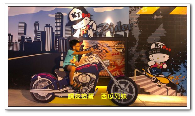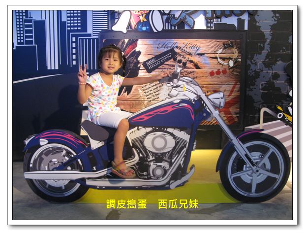 媽咪~妳看,我可以把 kitty 舉高高~ 好酷的摩托車 YA~我也要騎~
